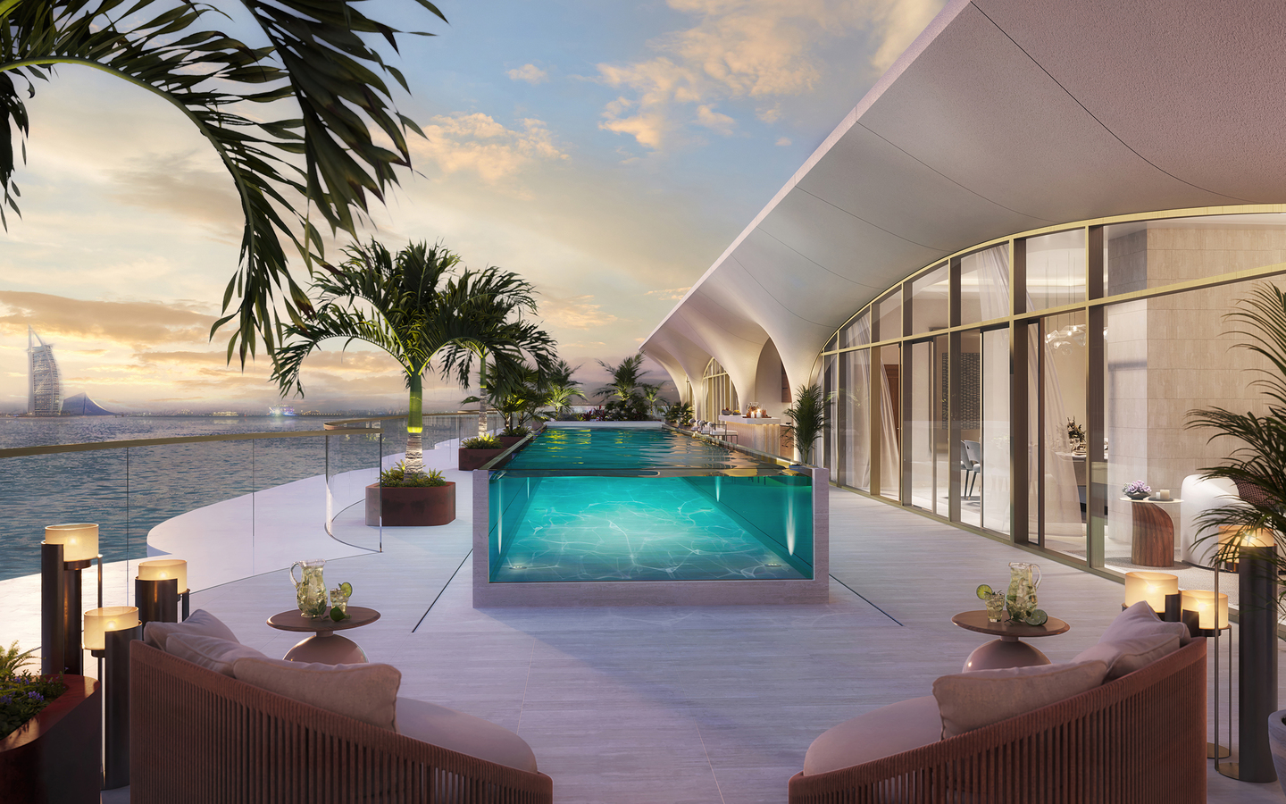 The rhythmic elegance of the design visually defines the residence, creating an effect of timeless form - a symbol of artisan style and inner harmony. Panoramic windows and carefully crafted balconies open expansive views of the Burj Al Arab and the shimmering Arabian Gulf, filling the interiors with natural light, while premium materials and bespoke finishes enhance the sense of understated luxury.